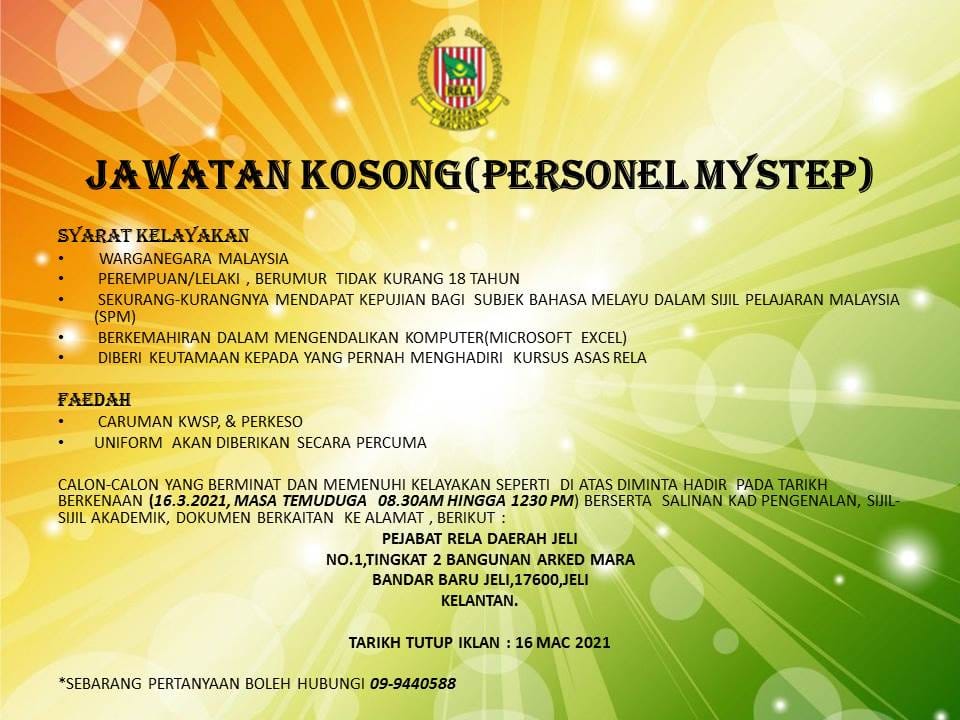Jawatan Kosong Pejabat Rela Daerah Jeli Like serta Ikut Facebook Kami, follow Chanel WhatsApp Jawatan Kosong & Telegram Portal SPA9 untuk capaian pantas kekosongan jawatan daripada kami sekarang.