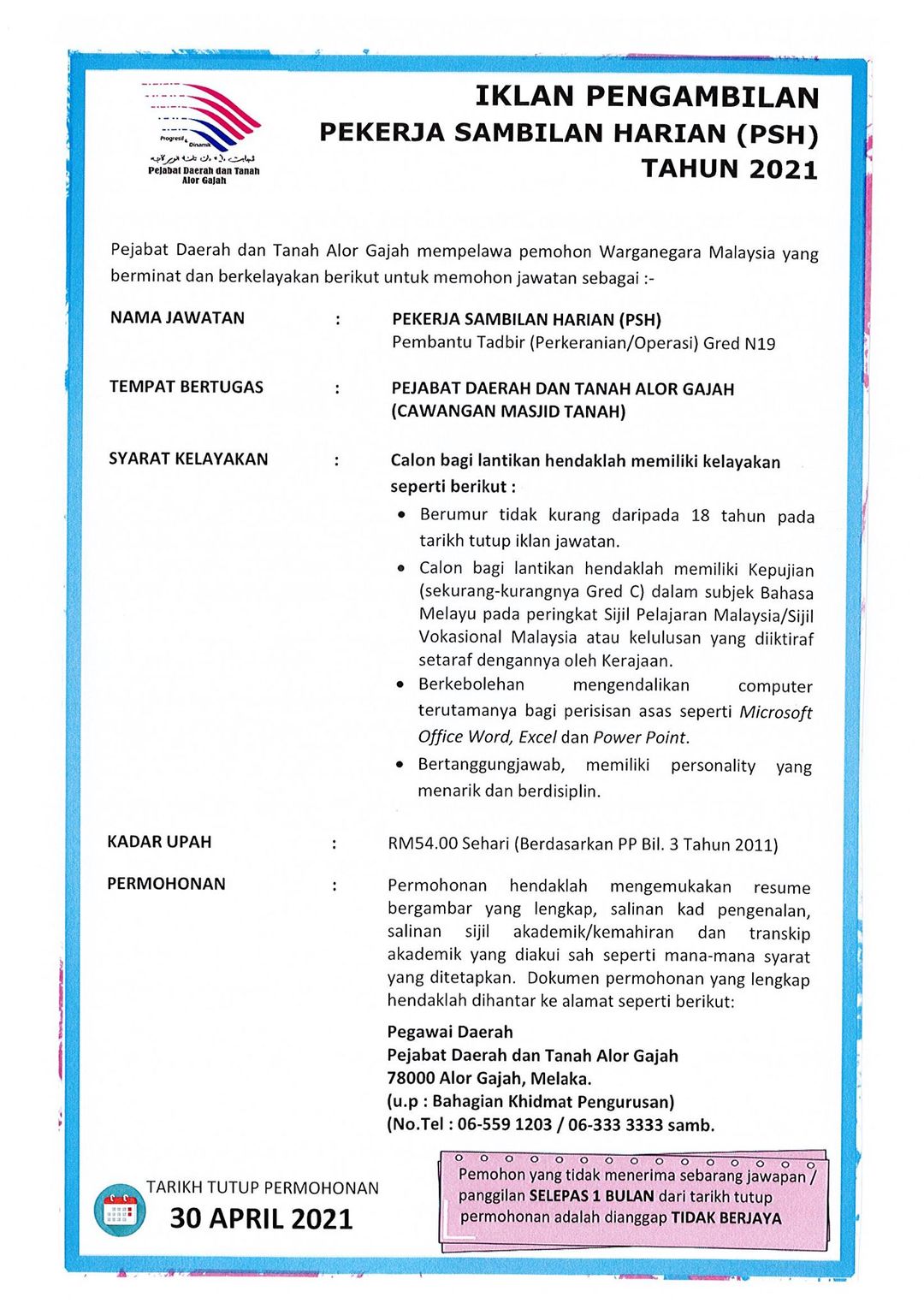 Jawatan Kosong Pejabat Daerah Dan Tanah Alor Gajah
