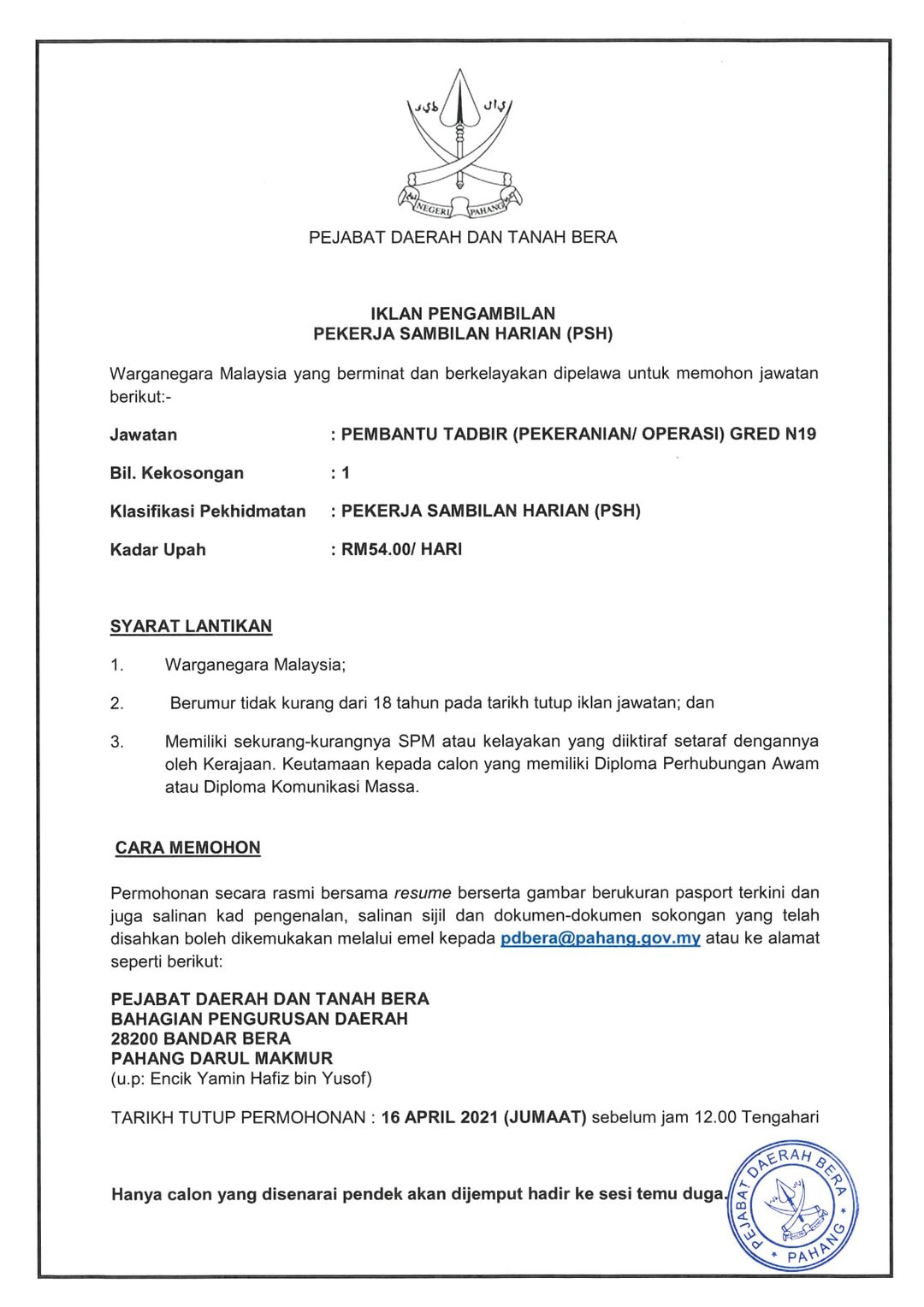 Jawatan Kosong Pejabat Daerah Dan Tanah Bera Like serta Ikut Facebook Kami, follow Chanel WhatsApp Jawatan Kosong & Telegram Portal SPA9 untuk capaian pantas kekosongan jawatan daripada kami sekarang.