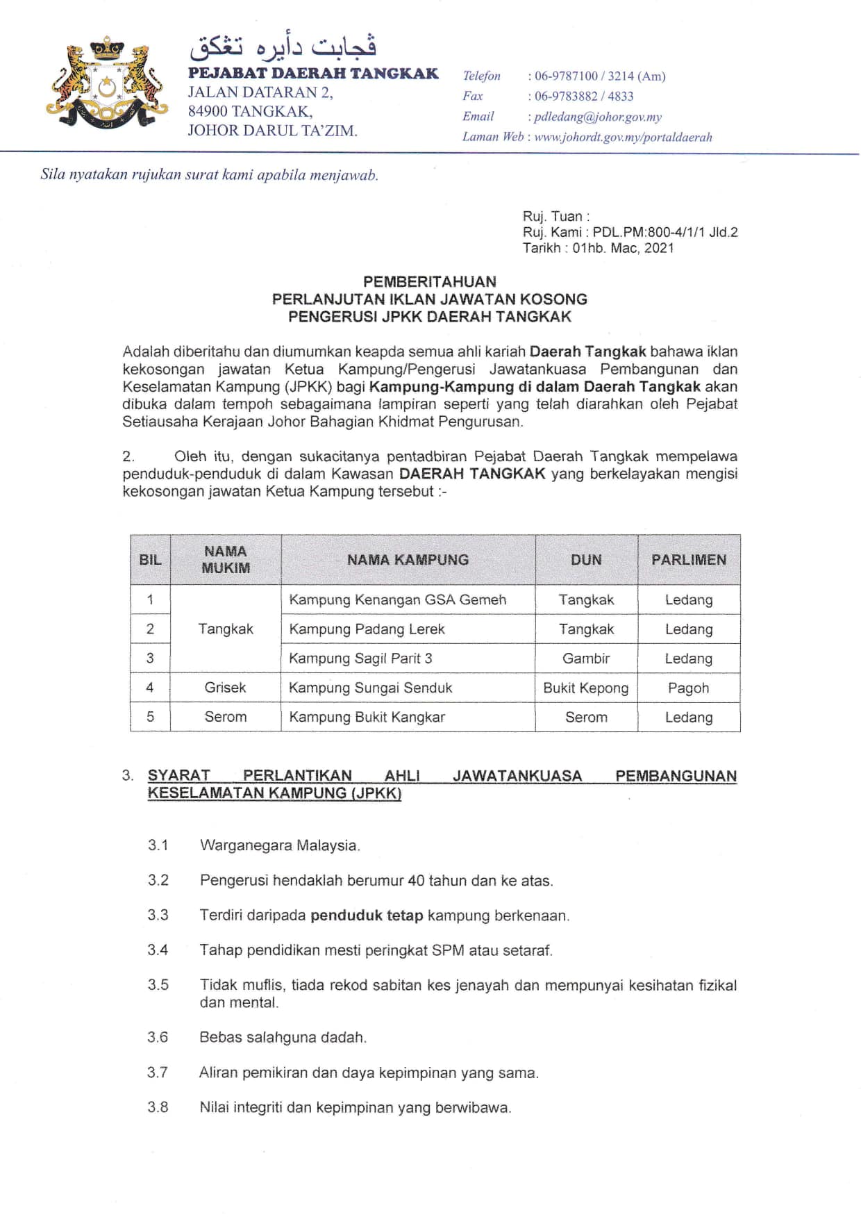 Jawatan Kosong Pejabat Daerah Tangkak Like serta Ikut Facebook Kami, follow Chanel WhatsApp Jawatan Kosong & Telegram Portal SPA9 untuk capaian pantas kekosongan jawatan daripada kami sekarang.