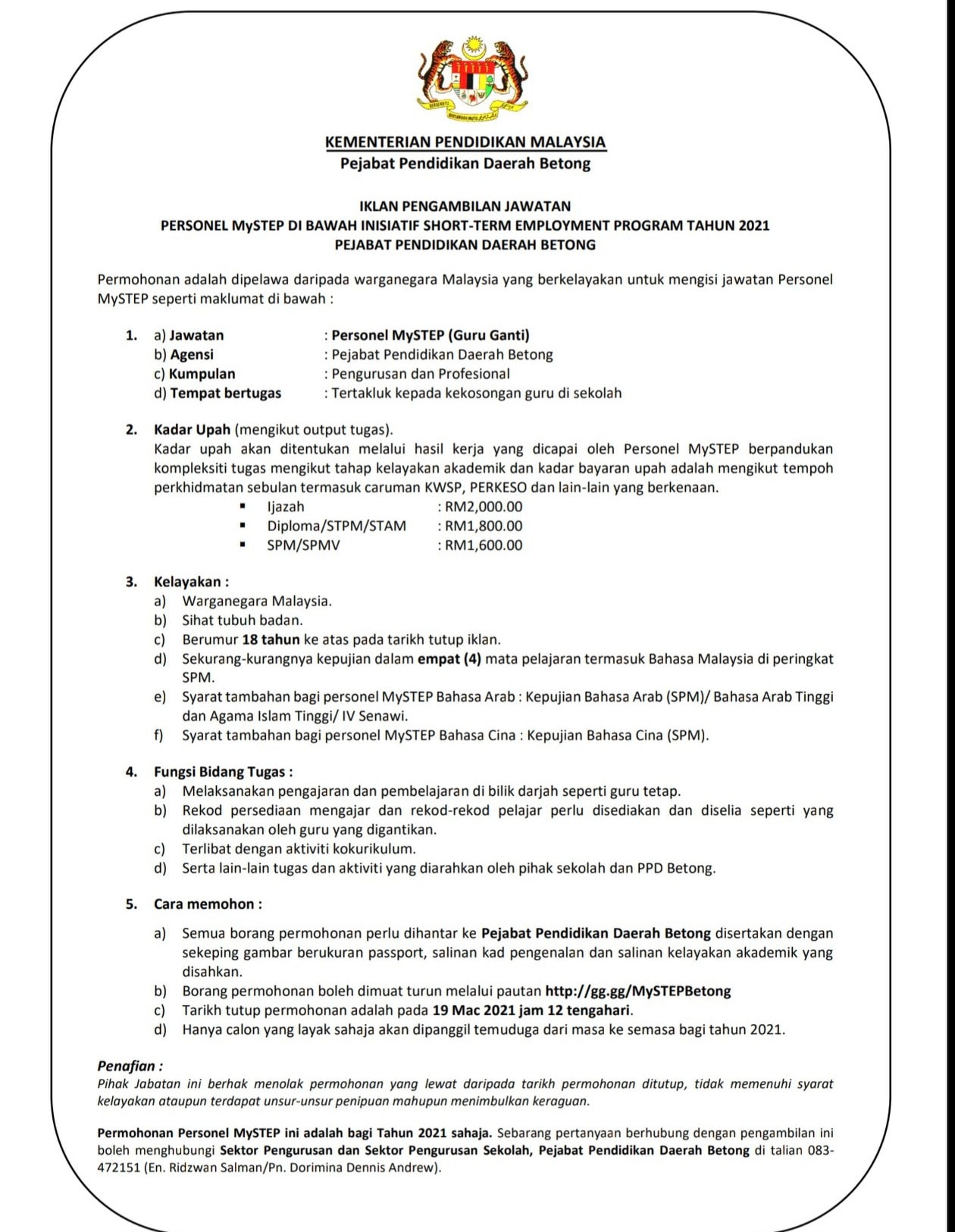 Jawatan Kosong Pejabat Pendidikan Daerah Bentong