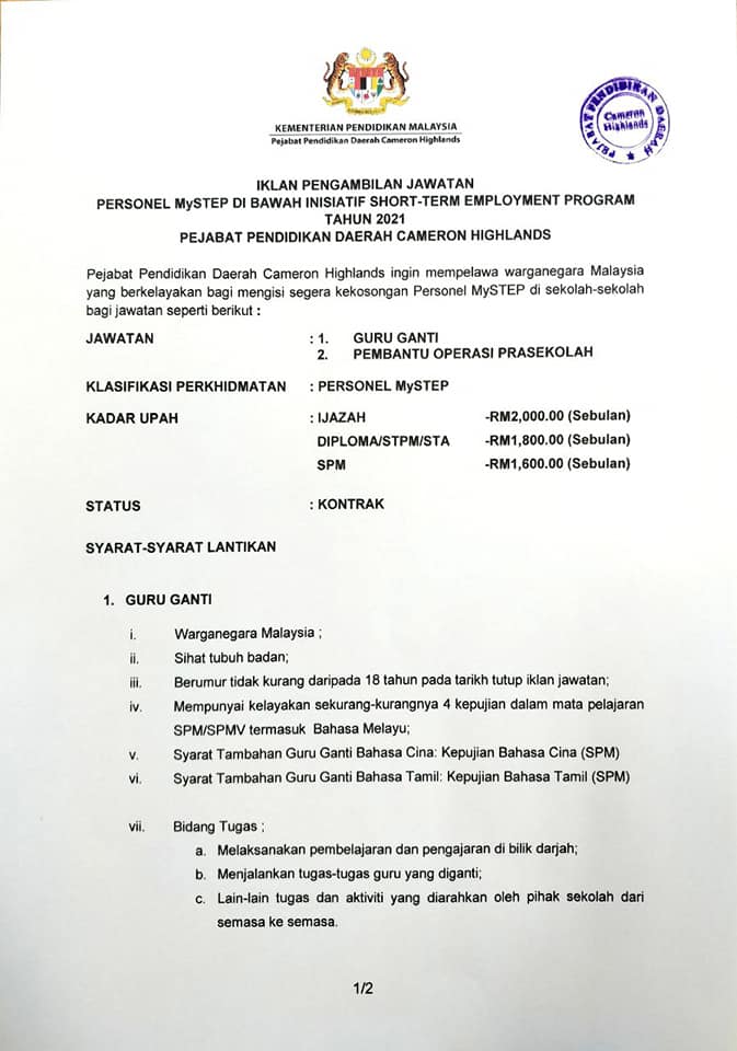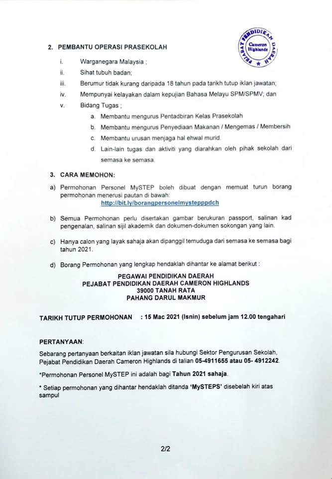 Jawatan Kosong Pejabat Pendidikan Daerah Cameron Highlands