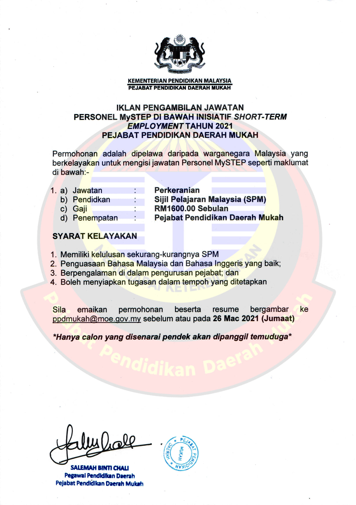 Jawatan Kosong Pejabat Pendidikan Daerah Mukah