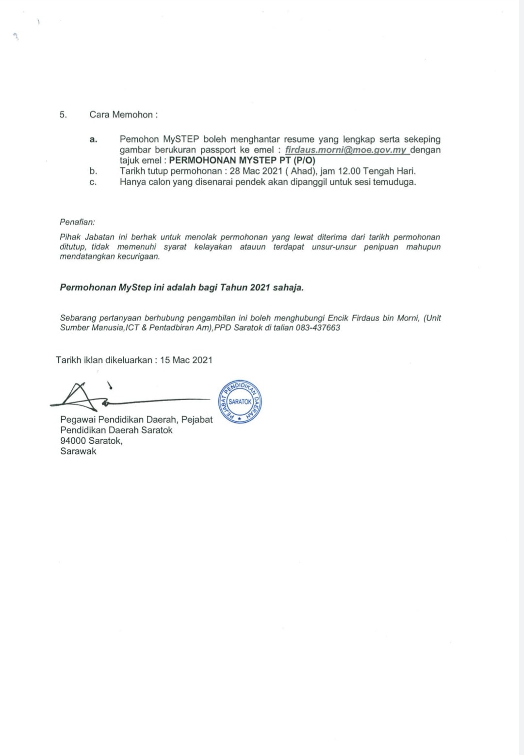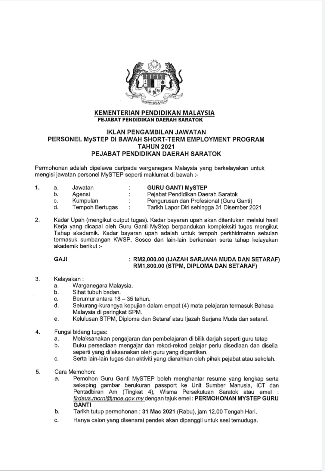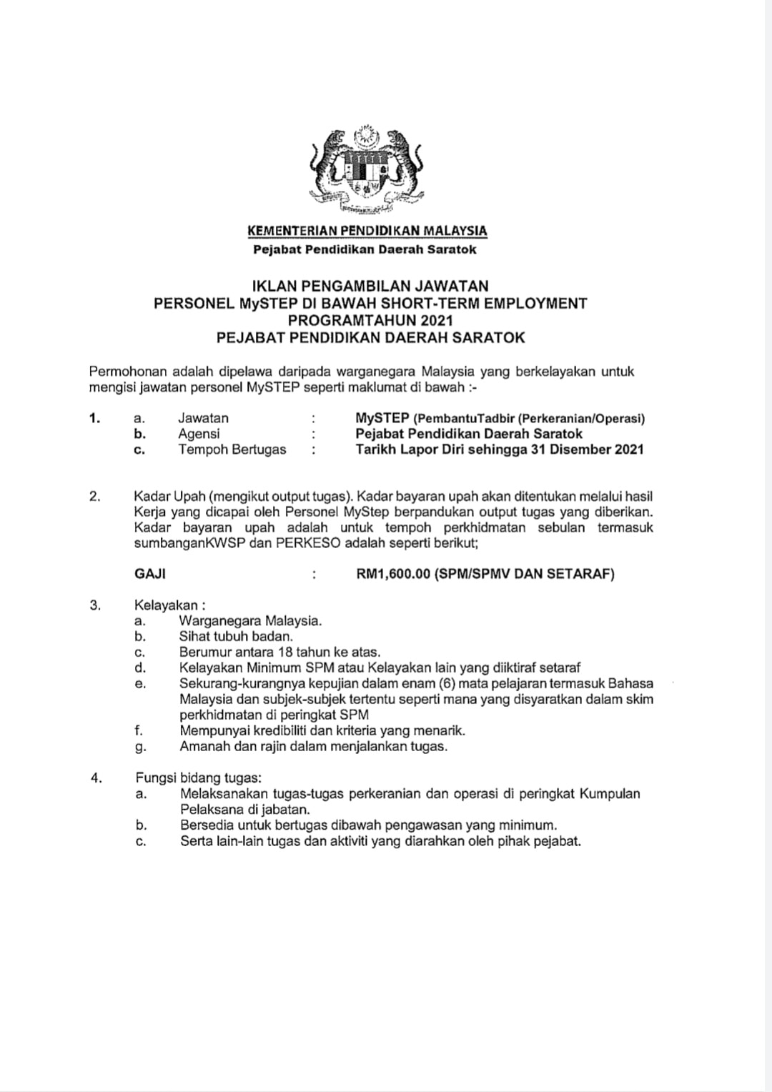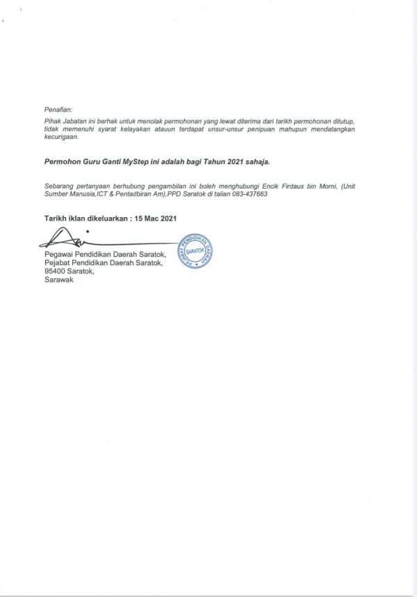 Jawatan Kosong Pejabat Pendidikan Daerah Saratok Like serta Ikut Facebook Kami, follow Chanel WhatsApp Jawatan Kosong & Telegram Portal SPA9 untuk capaian pantas kekosongan jawatan daripada kami sekarang.
