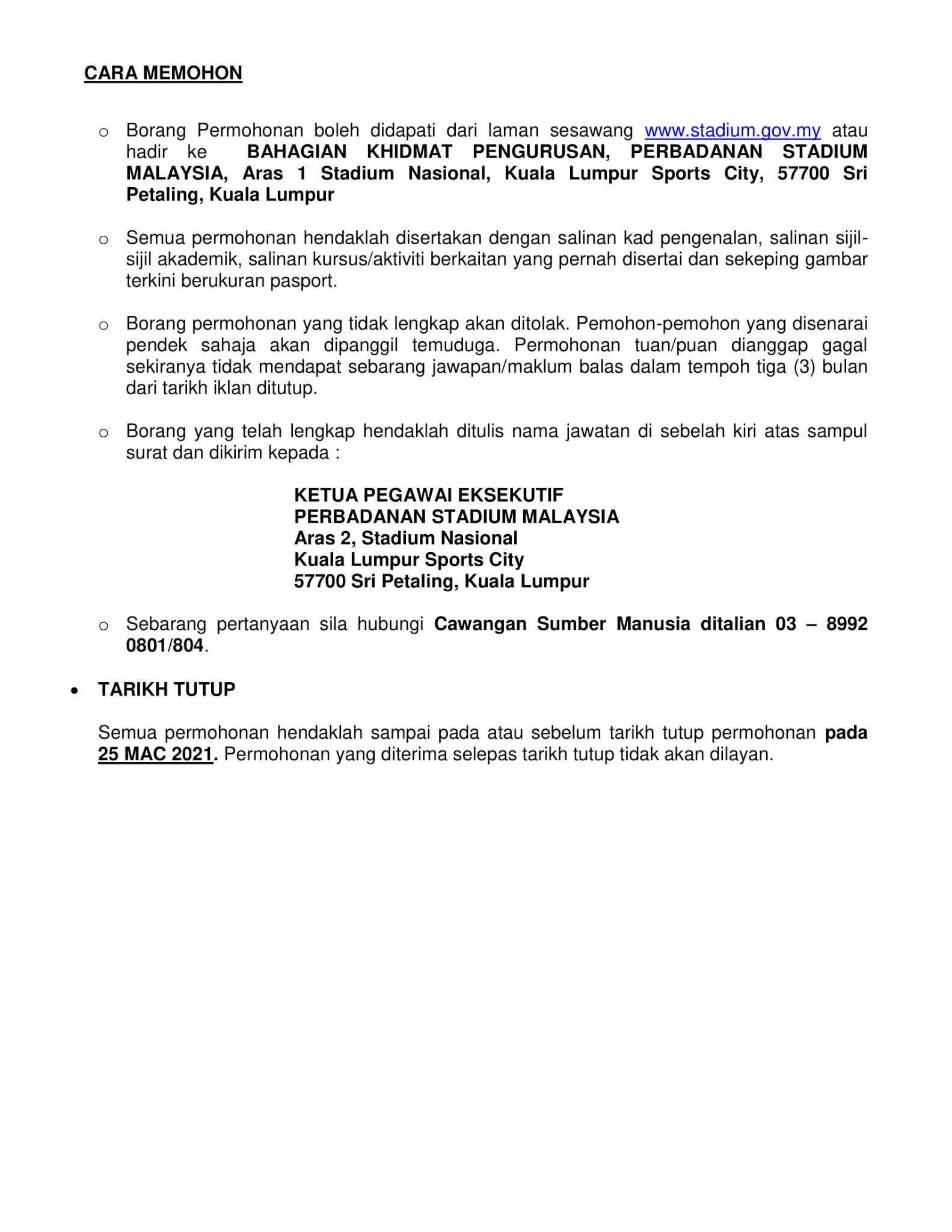 Jawatan Kosong Perbadanan Stadium Malaysia Like serta Ikut Facebook Kami, follow Chanel WhatsApp Jawatan Kosong & Telegram Portal SPA9 untuk capaian pantas kekosongan jawatan daripada kami sekarang.