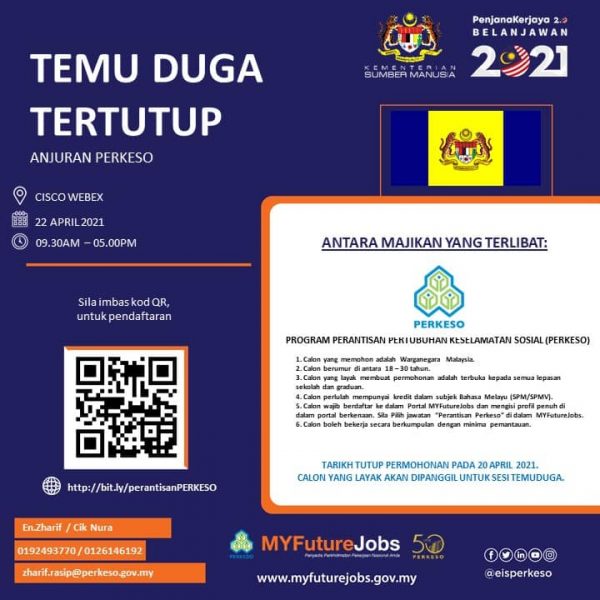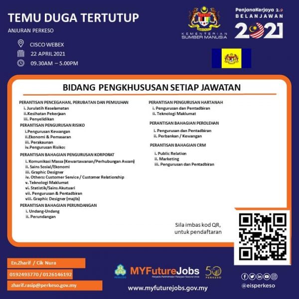 Jawatan Kosong Pertubuhan Keselamatan Sosial (Perkeso) Like serta Ikut Facebook Kami, follow Chanel WhatsApp Jawatan Kosong & Telegram Portal SPA9 untuk capaian pantas kekosongan jawatan daripada kami sekarang.
