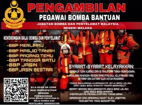 Permohonan Pegawai Bomba Bantuan (PBB) Negeri Melaka 2024