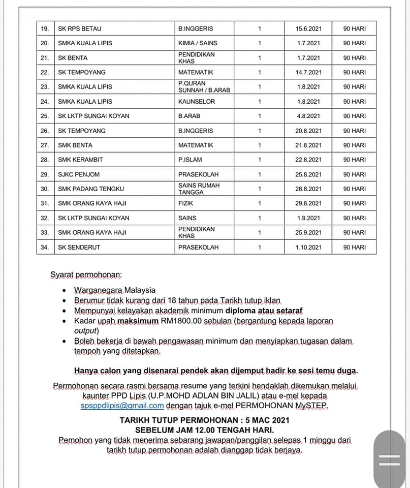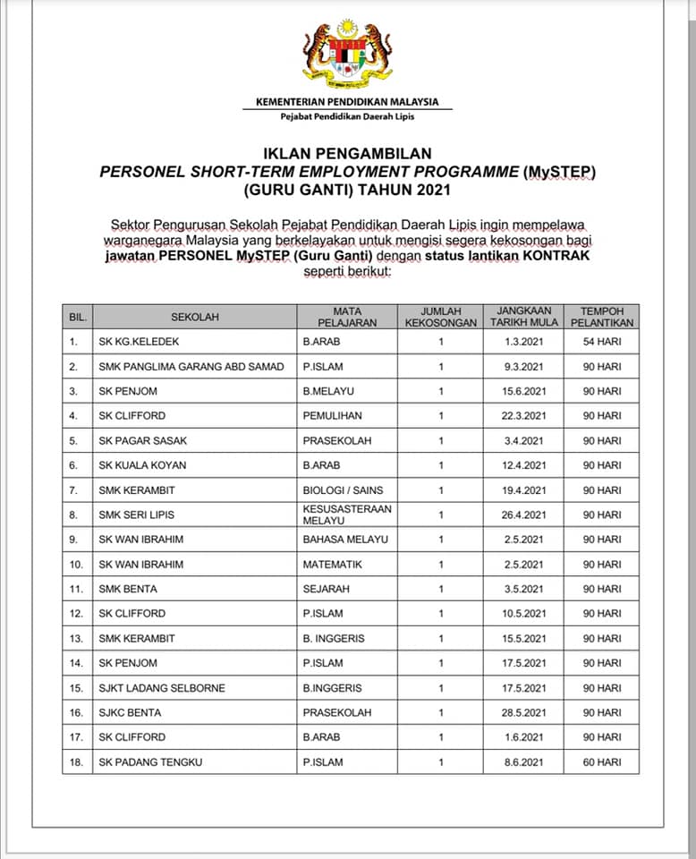 Jawatan Kosong Pejabat Pendidikan Daerah Lipis Like serta Ikut Facebook Kami, follow Chanel WhatsApp Jawatan Kosong & Telegram Portal SPA9 untuk capaian pantas kekosongan jawatan daripada kami sekarang.