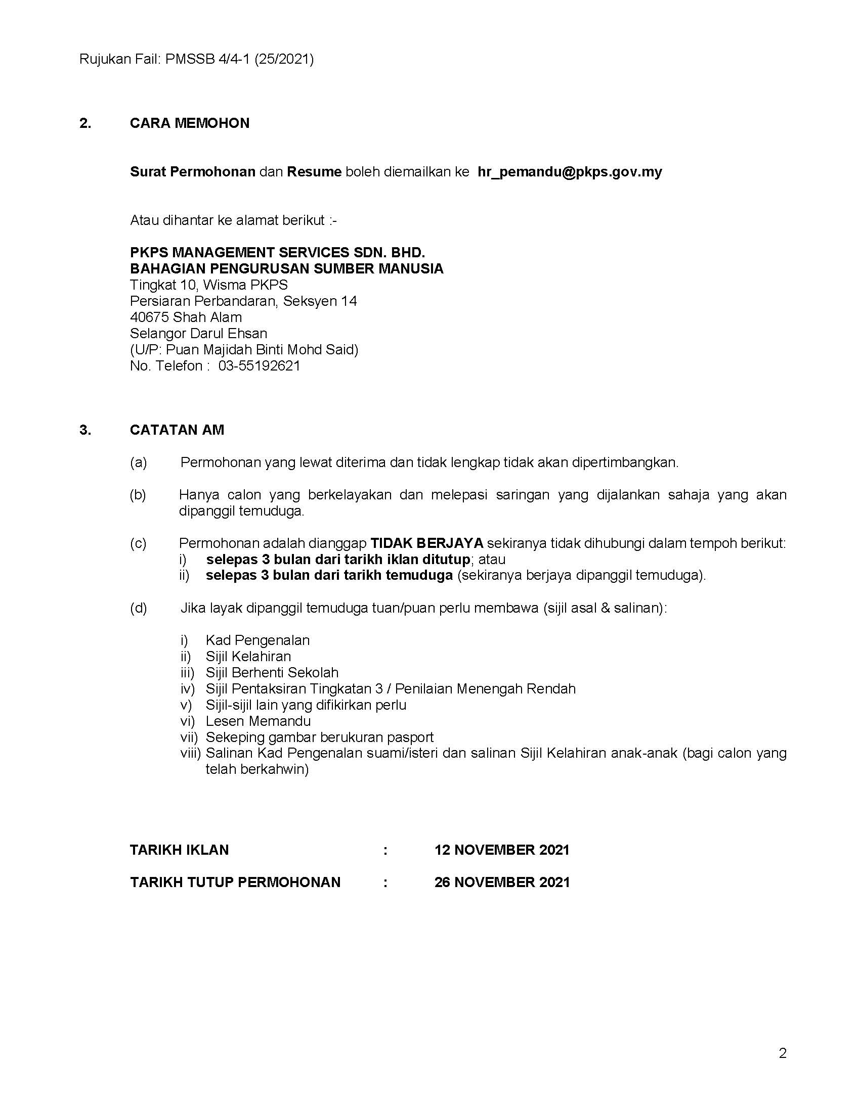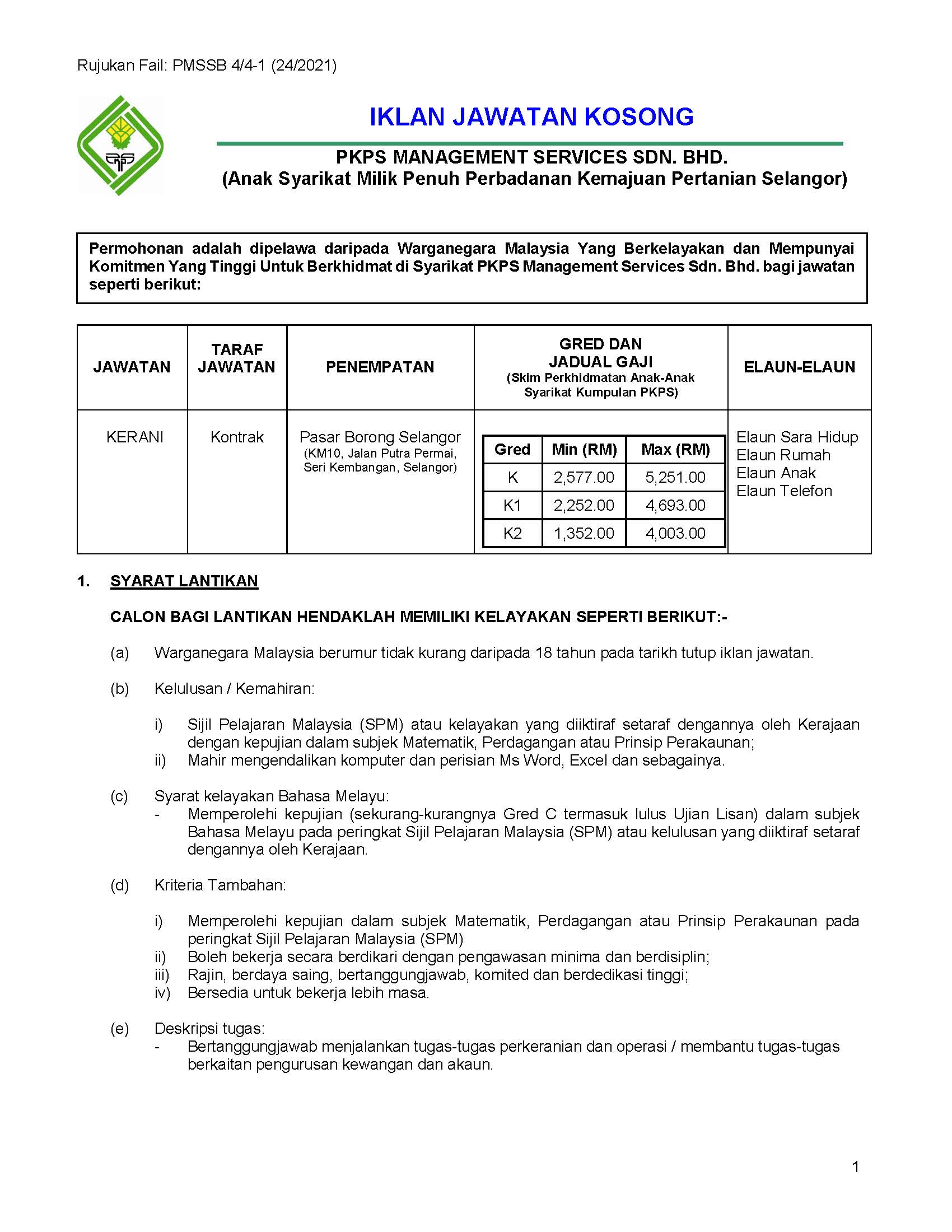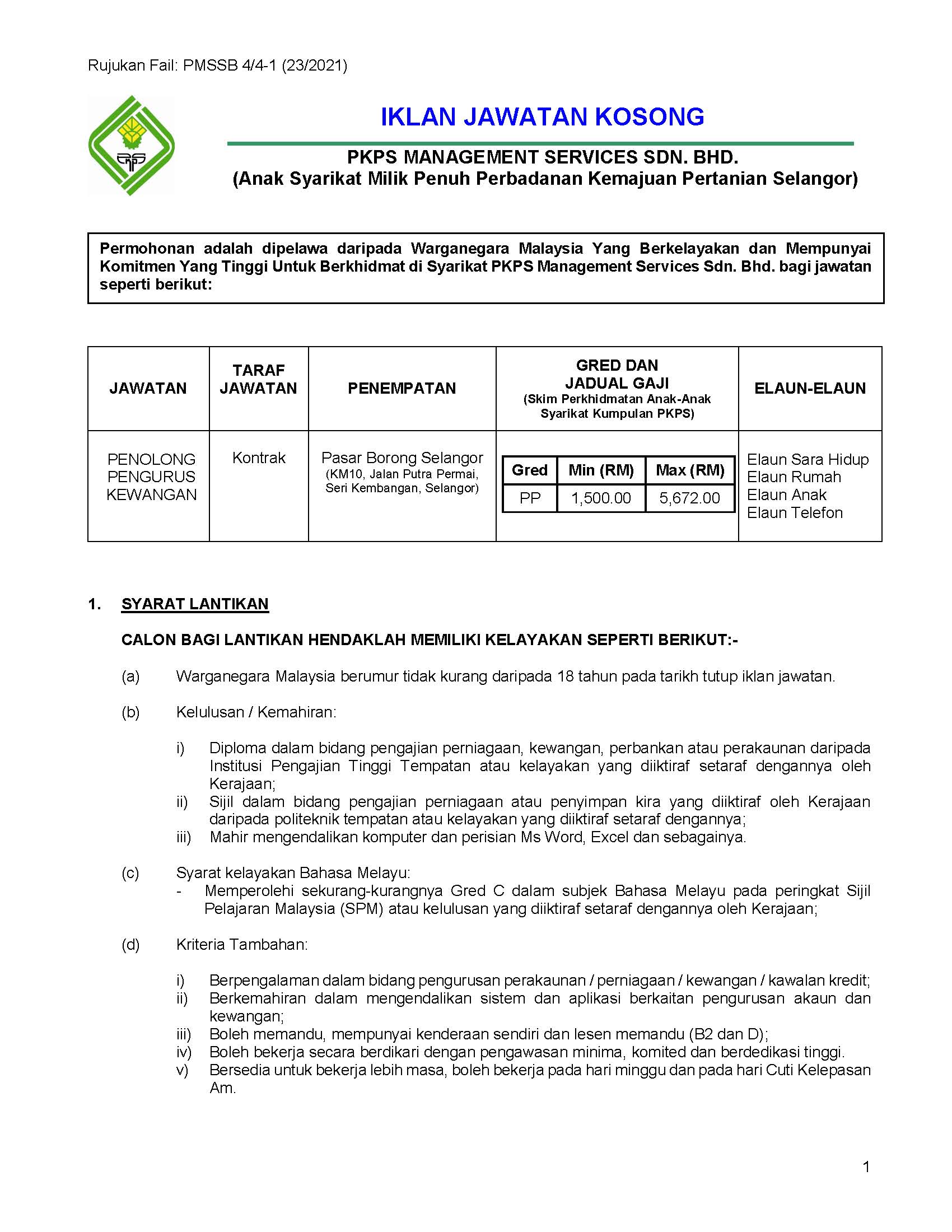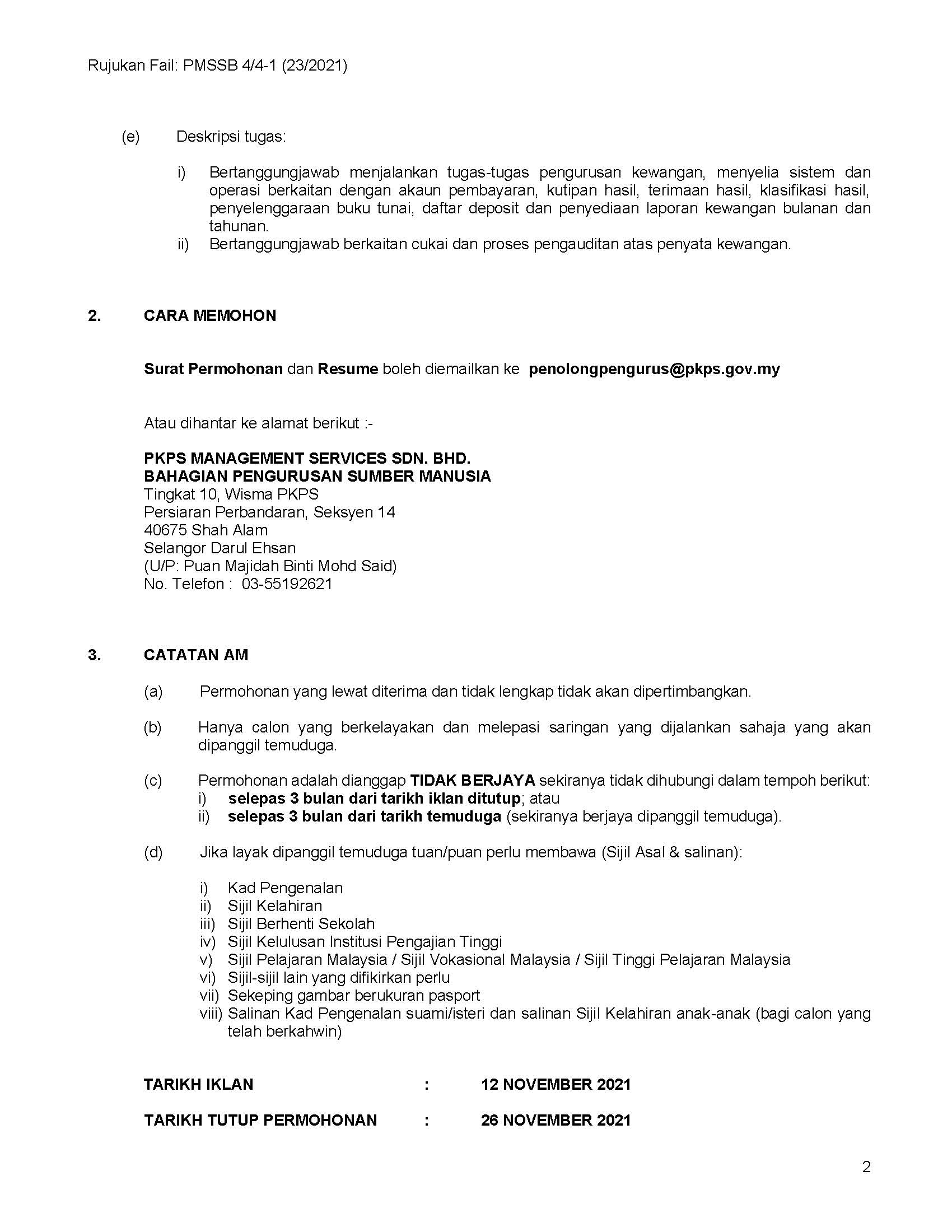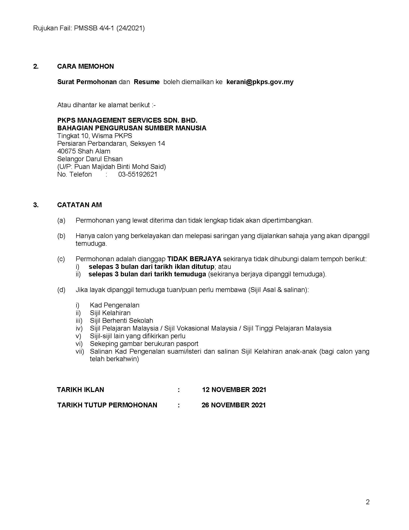 Iklan Jawatan PKPS Management Services Sdn Bhd