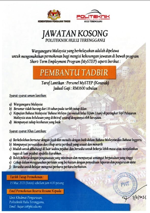 Jawatan Kosong Politeknik Hulu Terengganu Like serta Ikut Facebook Kami, follow Chanel WhatsApp Jawatan Kosong & Telegram Portal SPA9 untuk capaian pantas kekosongan jawatan daripada kami sekarang.