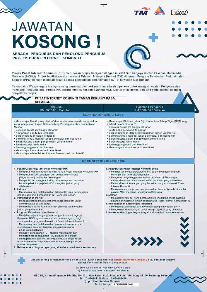 Iklan Jawatan Pengurus & Penolong Pengurus Di Pusat Internet Negeri Selangor