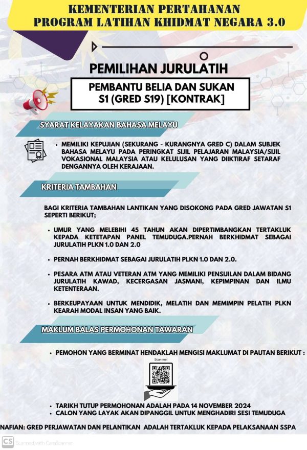 Terkini Iklan Jawatan Kosong Kementerian Pertahanan Malaysia Klik Jawatan Disini Like serta Ikut Facebook Kami, follow Chanel WhatsApp Jawatan Kosong & Telegram Portal SPA9 untuk capaian pantas kekosongan jawatan daripada kami sekarang.