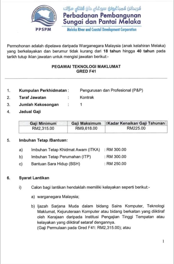 Terkini Iklan Jawatan Kosong Perbadanan Pembangunan Sungai Dan Pantai Melaka Like serta Ikut Facebook Kami, follow Chanel WhatsApp Jawatan Kosong & Telegram Portal SPA9 untuk capaian pantas kekosongan jawatan daripada kami sekarang. Klik Iklan Jawatan