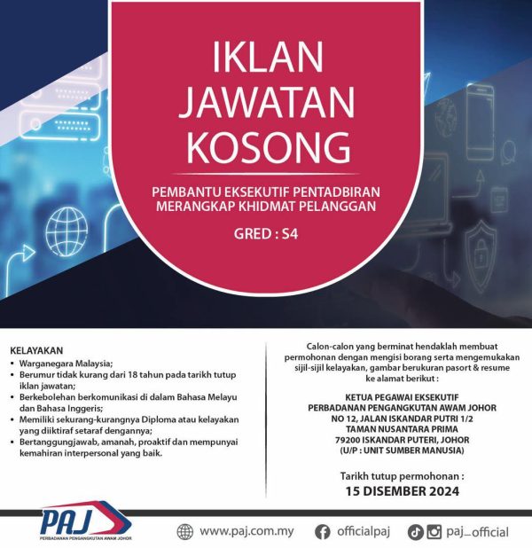 Terkini IKlan Jawatan Kosong Perbadanan Pengangkutan Awam Johor Like serta Ikut Facebook Kami, follow Chanel WhatsApp Jawatan Kosong & Telegram Portal SPA9 untuk capaian pantas kekosongan jawatan daripada kami sekarang. Klik Jawatan Disini