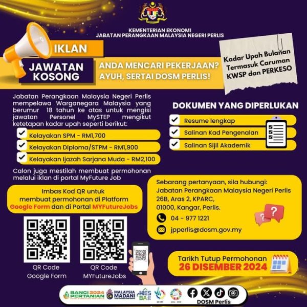 Terkini Iklan Jawatan Kosong Personel MySTEP Jabatan Perangkaan Perlis Like serta Ikut Facebook Kami, follow Chanel WhatsApp Jawatan Kosong & Telegram Portal SPA9 untuk capaian pantas kekosongan jawatan daripada kami sekarang.