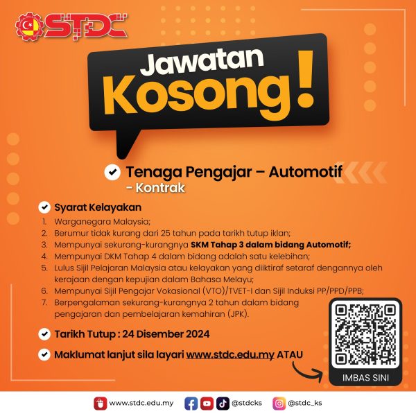 Terkini Iklan Jawatan Kosong Selangor Technical Skills Development Centre Like serta Ikut Facebook Kami, follow Chanel WhatsApp Jawatan Kosong & Telegram Portal SPA9 untuk capaian pantas kekosongan jawatan daripada kami sekarang. Klik Iklan Jawatan
