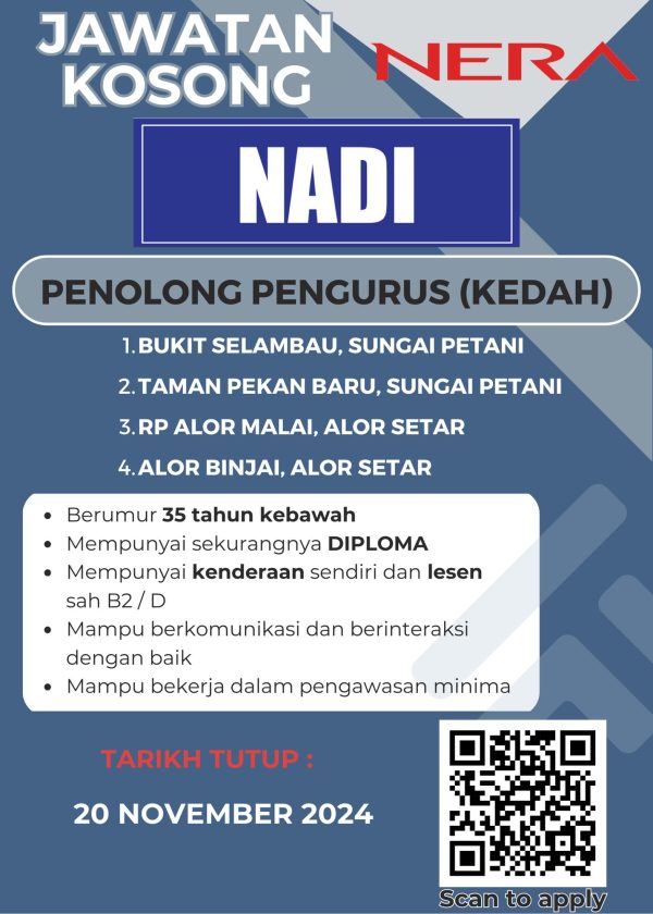 Terkini Iklan Jawatan Kosong Terkini NERA (Malaysia) Sdn Bhd Like serta Ikut Facebook Kami, follow Chanel WhatsApp Jawatan Kosong & Telegram Portal SPA9 untuk capaian pantas kekosongan jawatan daripada kami sekarang.