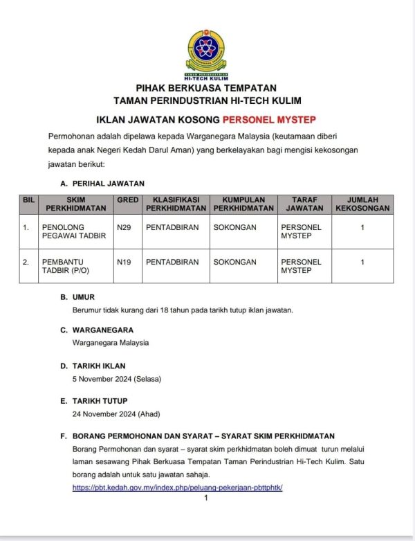 Terkini Iklan Jawatan Kosong Terkini Pihak Berkuasa Tempatan Taman Perindustrian Hi-Tech Kulim