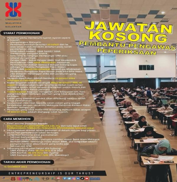 Terkini Iklan Jawatan Kosong Universiti Malaysia Kelantan (UMK) Like serta Ikut Facebook Kami, follow Chanel WhatsApp Jawatan Kosong & Telegram Portal SPA9 untuk capaian pantas kekosongan jawatan daripada kami sekarang.