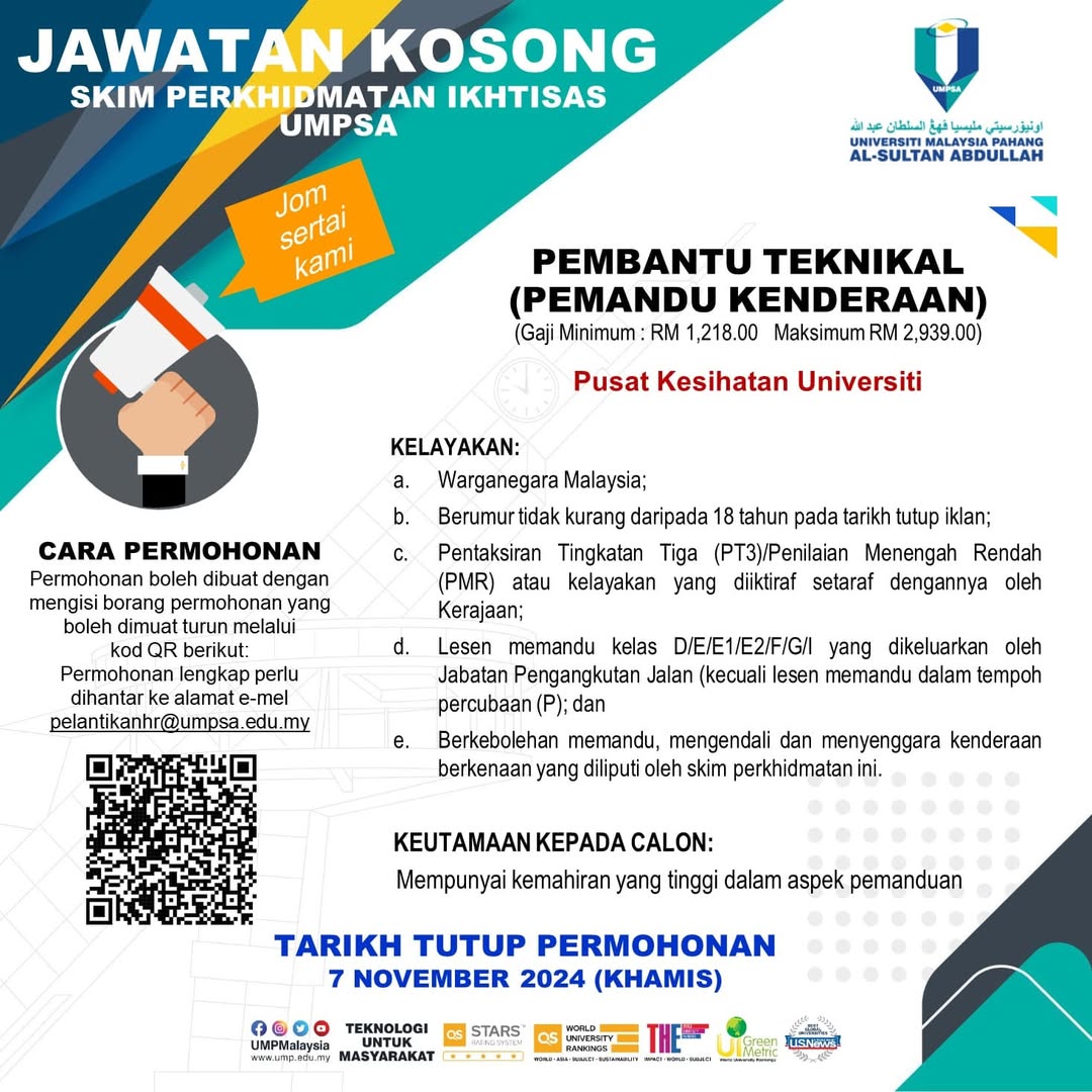 Terkini Iklan Jawatan Kosong Universiti Malaysia Pahang (UMP) Like serta Ikut Facebook Kami, follow Chanel WhatsApp Jawatan Kosong & Telegram Portal SPA9 untuk capaian pantas kekosongan jawatan daripada kami sekarang. Klik Jawatan Disini