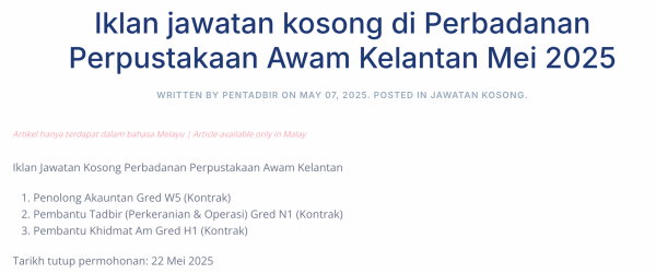 Terkini Iklan Jawatan Perbadanan Perpustakaan Awam Kelantan Like serta Ikut Facebook Kami, follow Chanel WhatsApp Jawatan Kosong & Telegram Portal SPA9 untuk capaian pantas kekosongan jawatan daripada kami sekarang. Klik Jawatan Disini