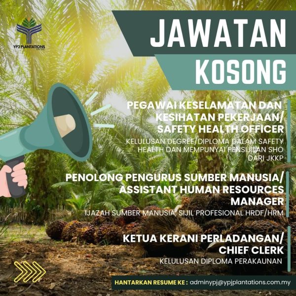 Terkini Iklan YPJ Plantations Sdn Bhd (YPJP) Like serta Ikut Facebook Kami, follow Chanel WhatsApp Jawatan Kosong & Telegram Portal SPA9 untuk capaian pantas kekosongan jawatan daripada kami sekarang. Klik Jawatan Disini