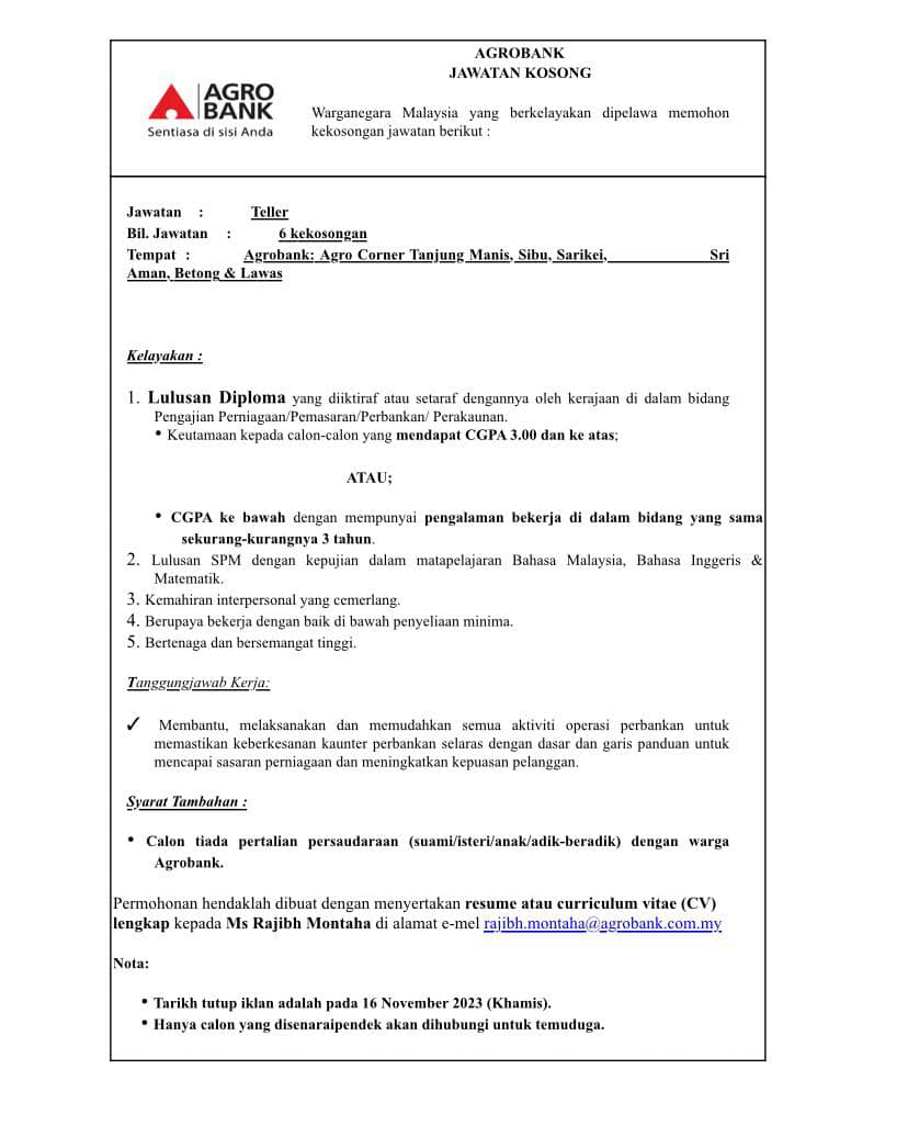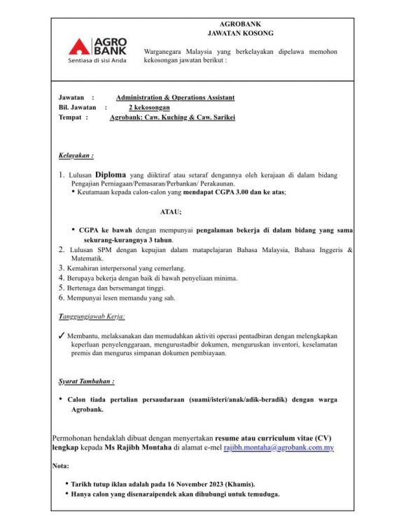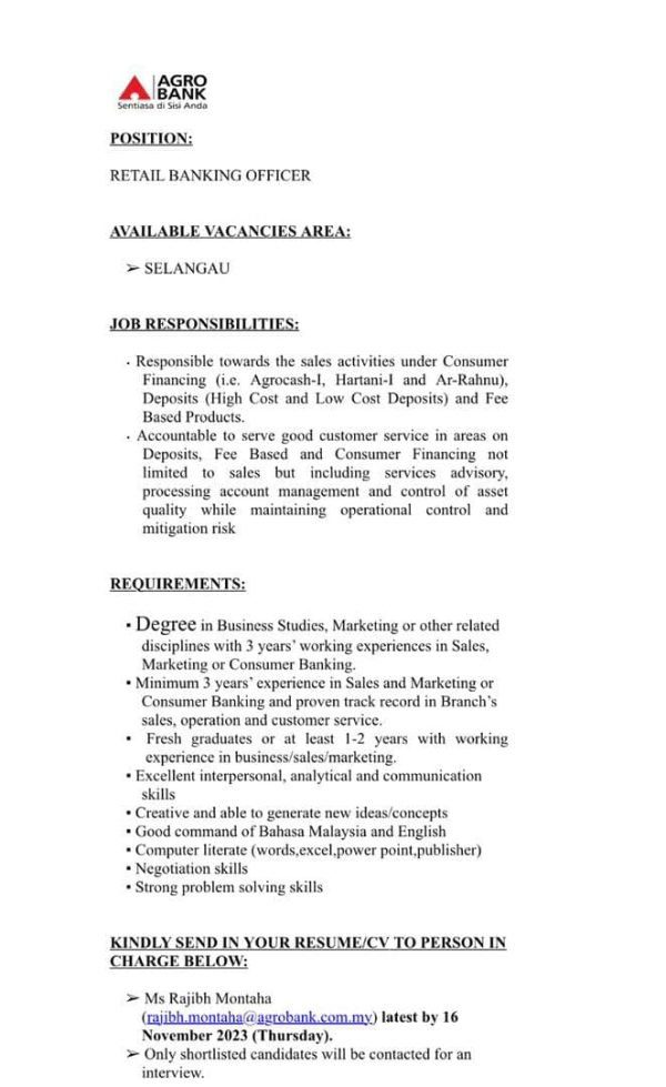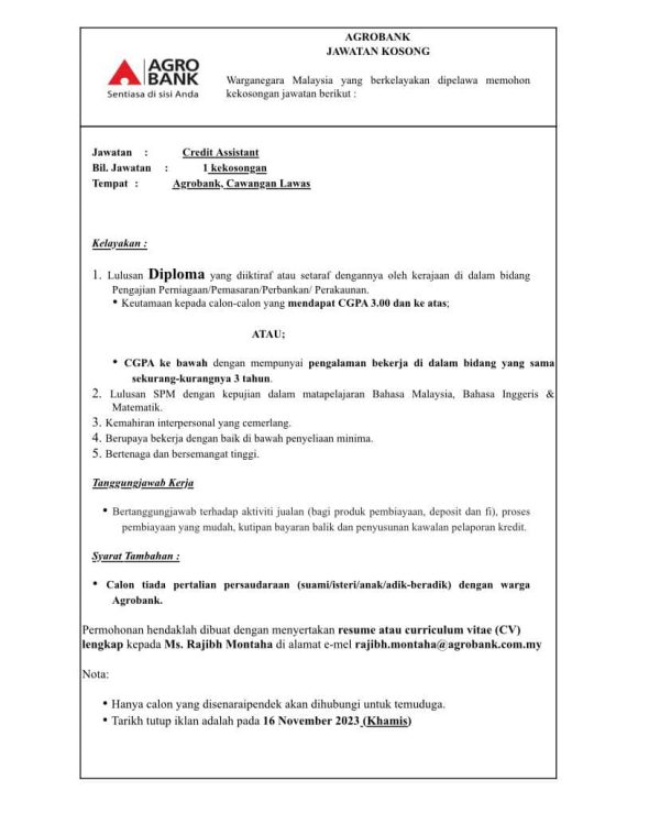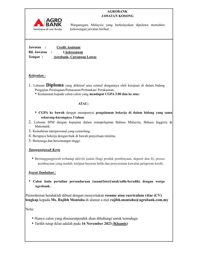 Terkini Jawatan Kosong Bank Pertanian Malaysia Berhad (Agrobank) Like serta Ikut Facebook Kami, follow Chanel WhatsApp Jawatan Kosong & Telegram Portal SPA9 untuk capaian pantas kekosongan jawatan daripada kami sekarang.