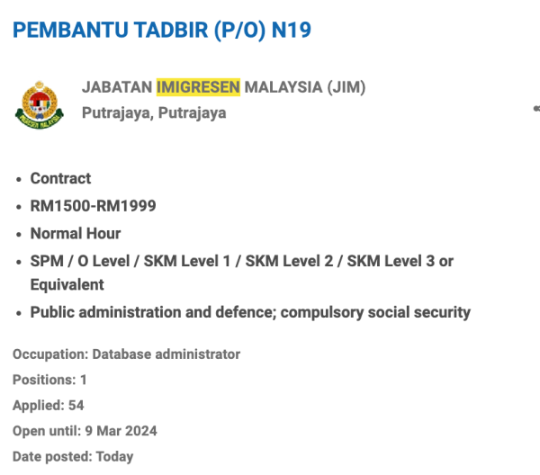 Terkini Jawatan Kosong Jabatan Imigresen Malaysia