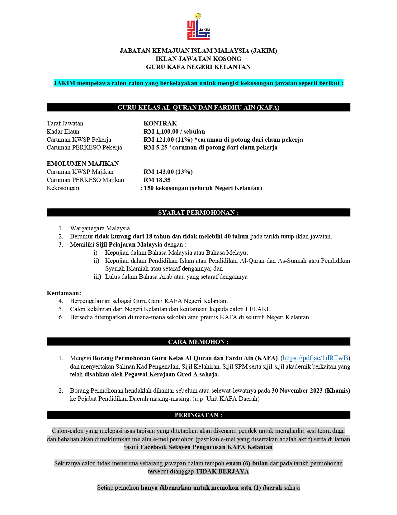 Terkini Jawatan Kosong Jabatan Kemajuan Islam Malaysia (JAKIM) Like serta Ikut Facebook Kami, follow Chanel WhatsApp Jawatan Kosong & Telegram Portal SPA9 untuk capaian pantas kekosongan jawatan daripada kami sekarang. Borang Jawatan