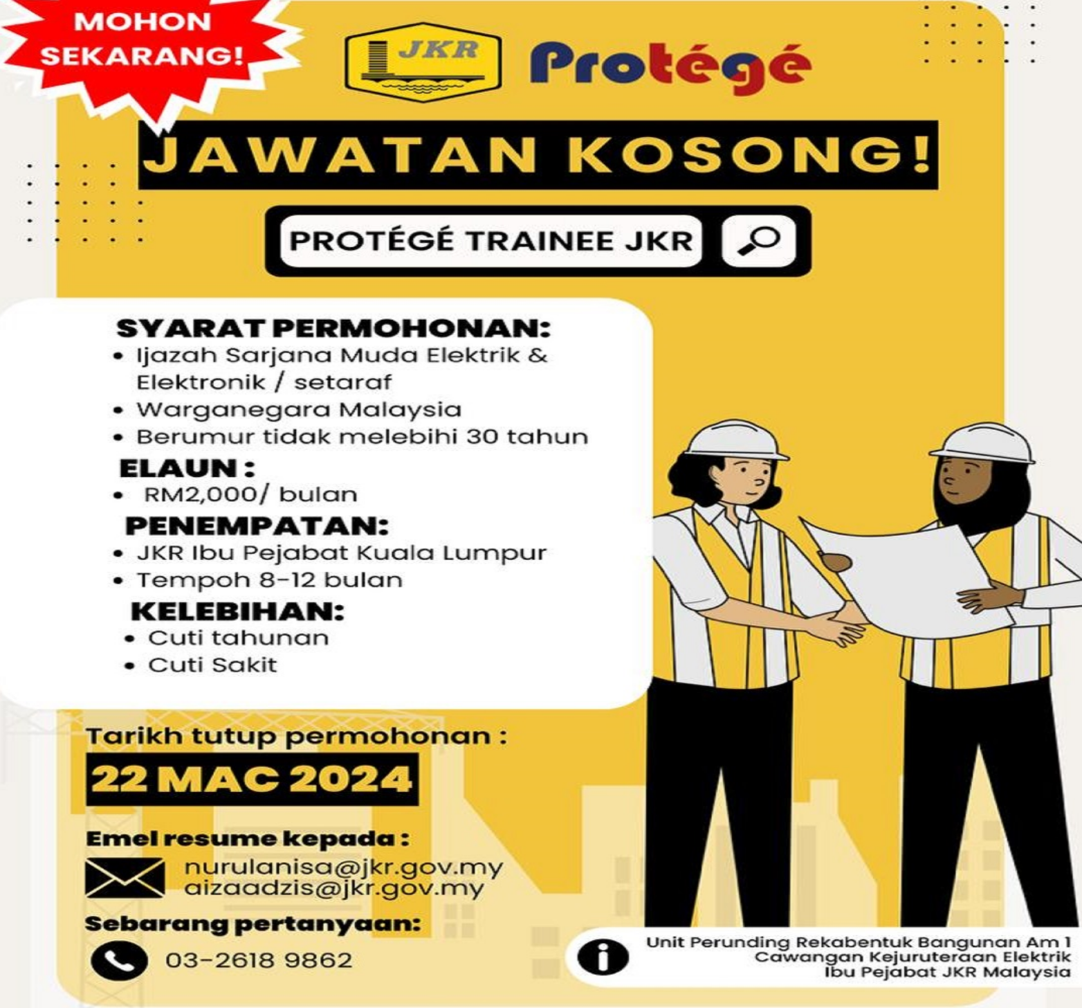 Terkini Jawatan Kosong Jabatan Kerja Raya (JKR) Like serta Ikut Facebook Kami, follow Chanel WhatsApp Jawatan Kosong & Telegram Portal SPA9 untuk capaian pantas kekosongan jawatan daripada kami sekarang.