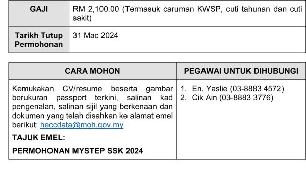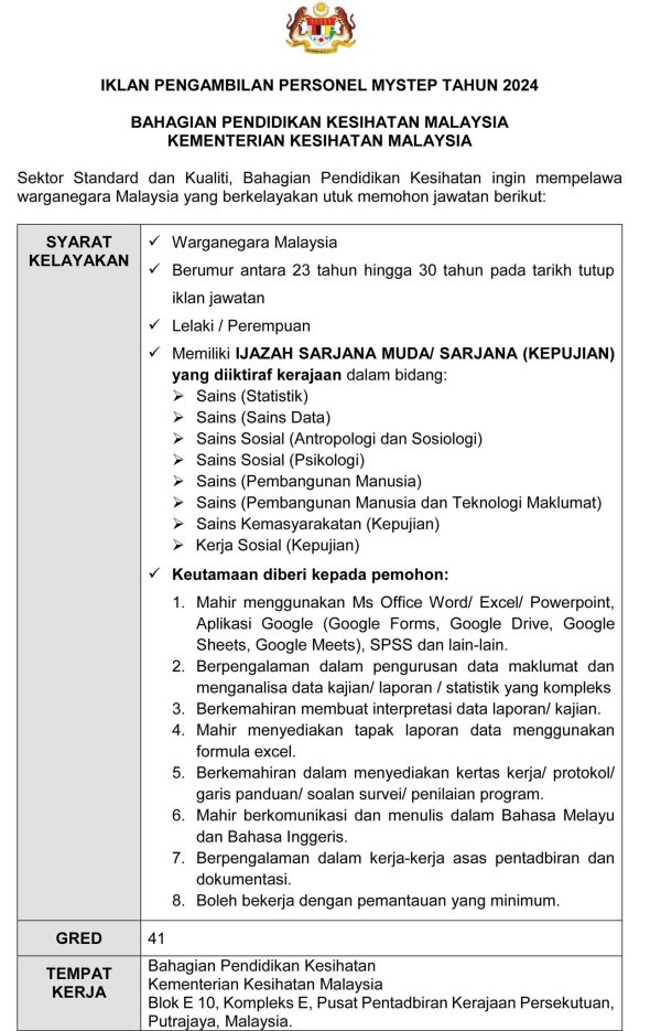 Terkini Jawatan Kosong Kementerian Kesihatan Malaysia (KKM) Like serta Ikut Facebook Kami, follow Chanel WhatsApp Jawatan Kosong & Telegram Portal SPA9 untuk capaian pantas kekosongan jawatan daripada kami sekarang.