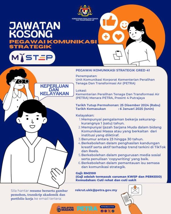 Terkini Jawatan Kosong Kementerian Peralihan Tenaga dan Transformasi Air Like serta Ikut Facebook Kami, follow Chanel WhatsApp Jawatan Kosong & Telegram Portal SPA9 untuk capaian pantas kekosongan jawatan daripada kami sekarang. Klik Iklan Jawatan