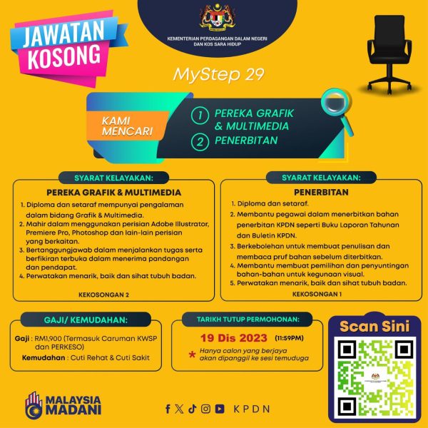 Terkini Jawatan Kosong Kementerian Perdagangan Dalam Negeri Dan Kos Sara Hidup (KPDN) Like serta Ikut Facebook Kami, follow Chanel WhatsApp Jawatan Kosong & Telegram Portal SPA9 untuk capaian pantas kekosongan jawatan daripada kami sekarang. Klik Jawatan Disini