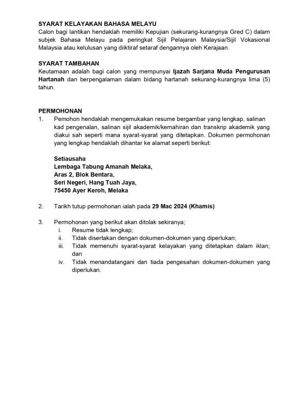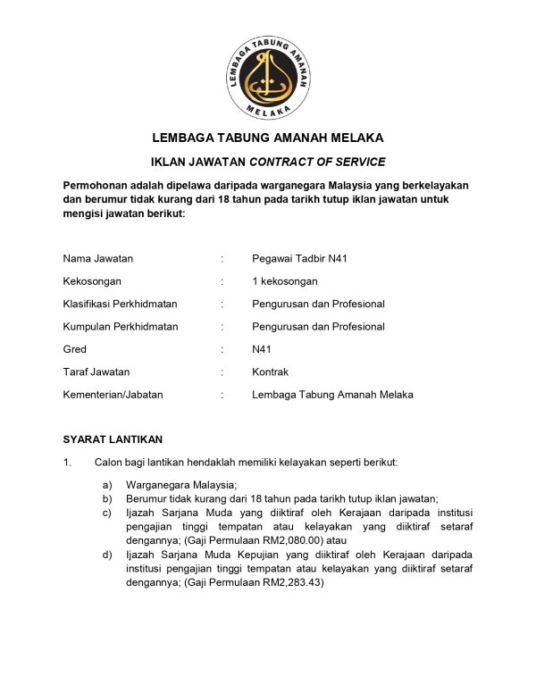 Terkini Jawatan Kosong Lembaga Tabung Amanah Melaka Like serta Ikut Facebook Kami, follow Chanel WhatsApp Jawatan Kosong & Telegram Portal SPA9 untuk capaian pantas kekosongan jawatan daripada kami sekarang.
