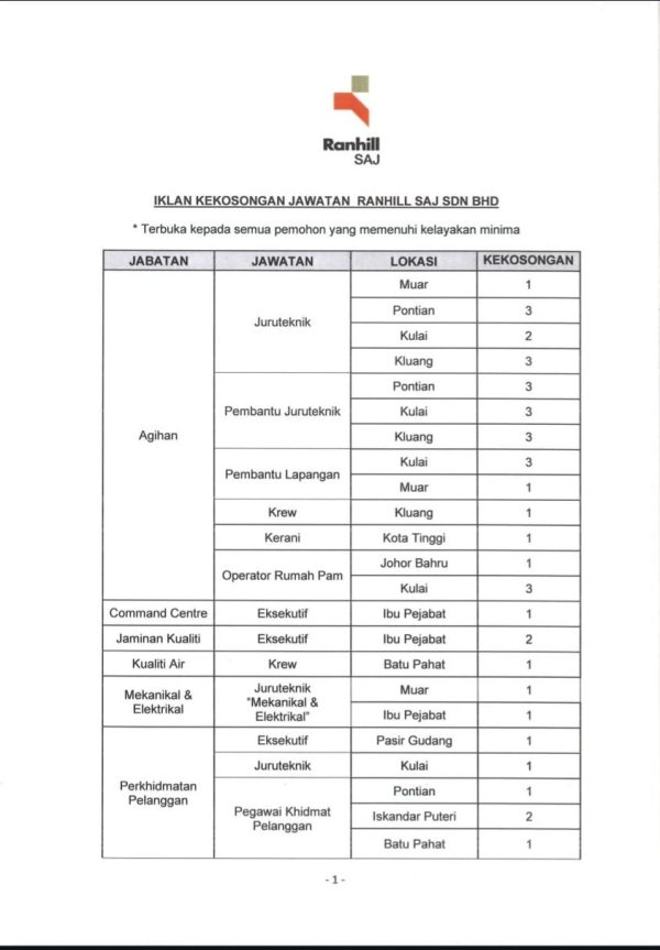 Terkini Jawatan Kosong Pelbagai Jawatan ~ Ranhill SAJ Like serta Ikut Facebook Kami, follow Chanel WhatsApp Jawatan Kosong & Telegram Portal SPA9 untuk capaian pantas kekosongan jawatan daripada kami sekarang. Klik Jawatan Disini