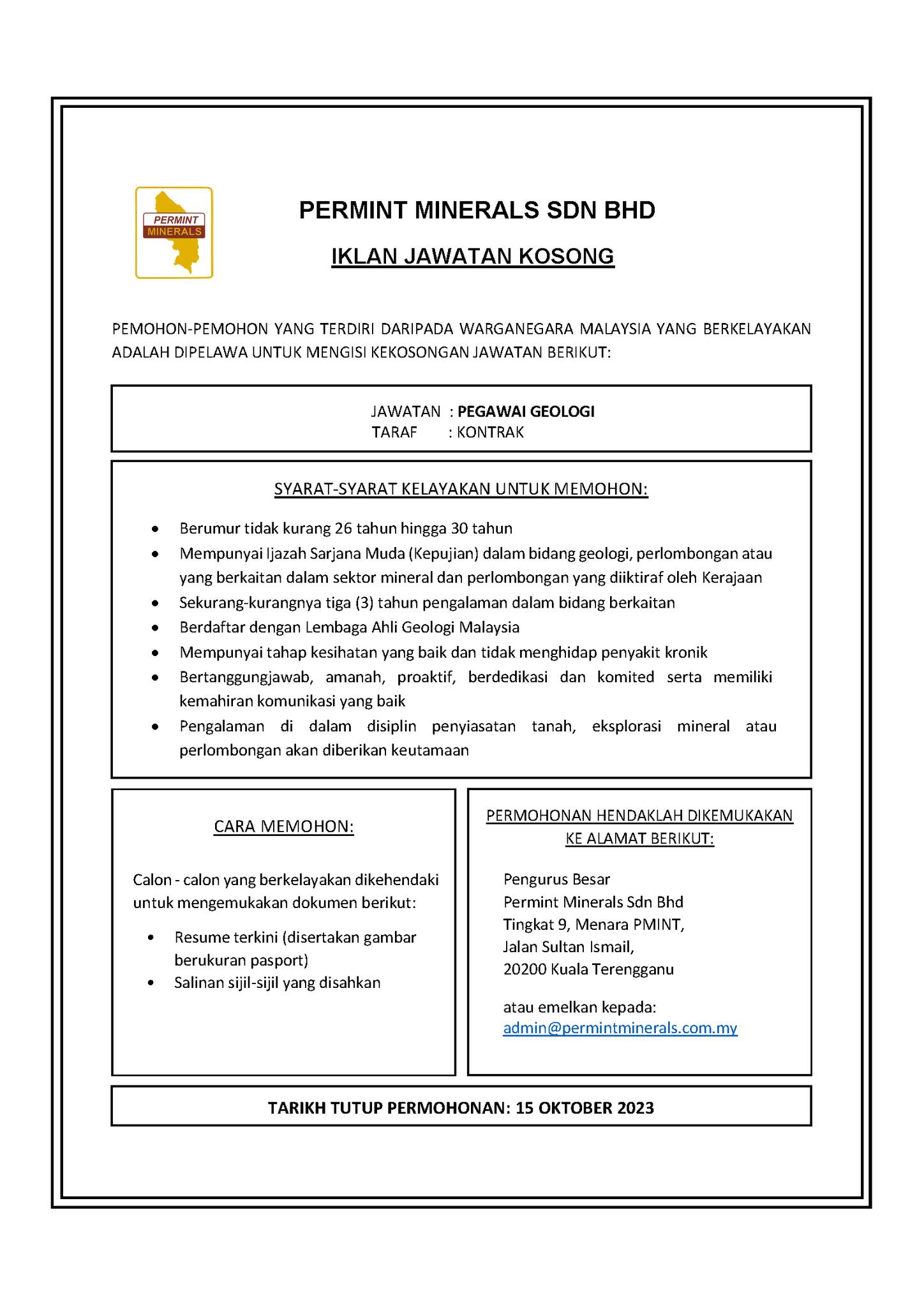 Terkini Jawatan Kosong Permint Minerals Sdn Bhd Like serta Ikut Facebook Kami, follow Chanel WhatsApp Jawatan Kosong & Telegram Portal SPA9 untuk capaian pantas kekosongan jawatan daripada kami sekarang.