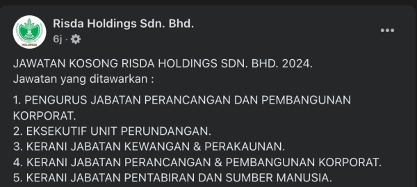 Terkini Jawatan Kosong RISDA Holdings Sdn Bhd Like serta Ikut Facebook Kami, follow Chanel WhatsApp Jawatan Kosong & Telegram Portal SPA9 untuk capaian pantas kekosongan jawatan daripada kami sekarang. Klik Iklan Jawatan