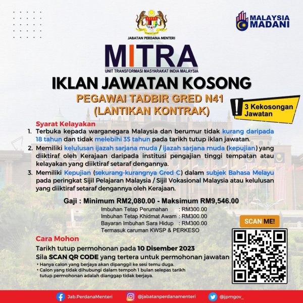 Terkini Jawatan Kosong Unit Transformasi Masyarakat India Malaysia (MITRA) Like serta Ikut Facebook Kami, follow Chanel WhatsApp Jawatan Kosong & Telegram Portal SPA9 untuk capaian pantas kekosongan jawatan daripada kami sekarang.