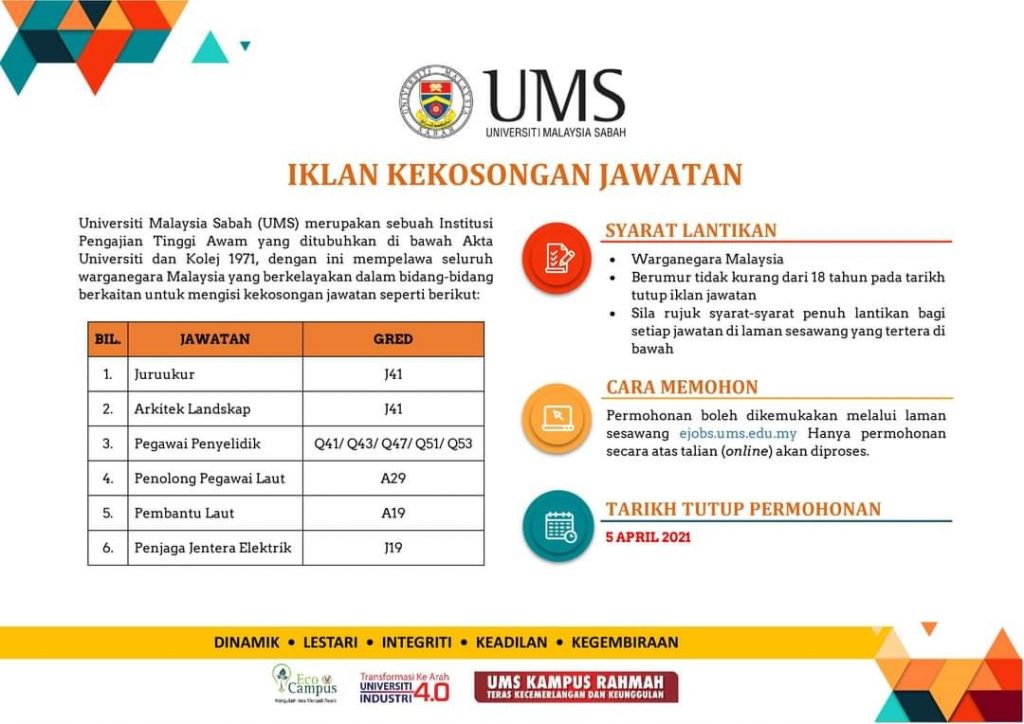 Jawatan Kosong Universiti Malaysia Sabah Like serta Ikut Facebook Kami, follow Chanel WhatsApp Jawatan Kosong & Telegram Portal SPA9 untuk capaian pantas kekosongan jawatan daripada kami sekarang.